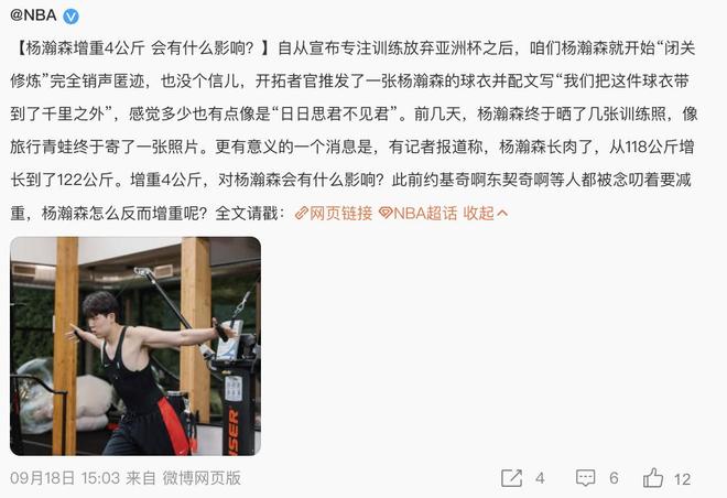 118公斤暴涨至122公斤,NBA官方揭秘杨瀚森增重幕后,影响可大了